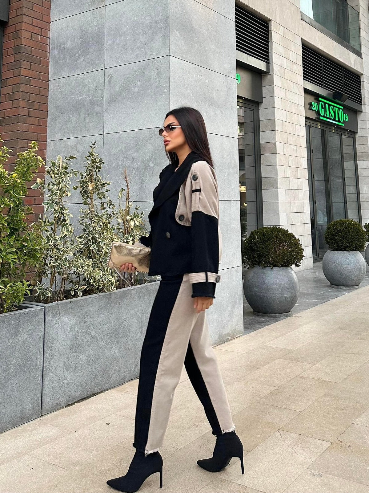 Make a bold statement with this edgy black oversized jacket featuring chic beige patch accents. Perfect for layering, this versatile piece combines effortless style with a modern twist. Dress it up or down—either way, you'll turn heads!