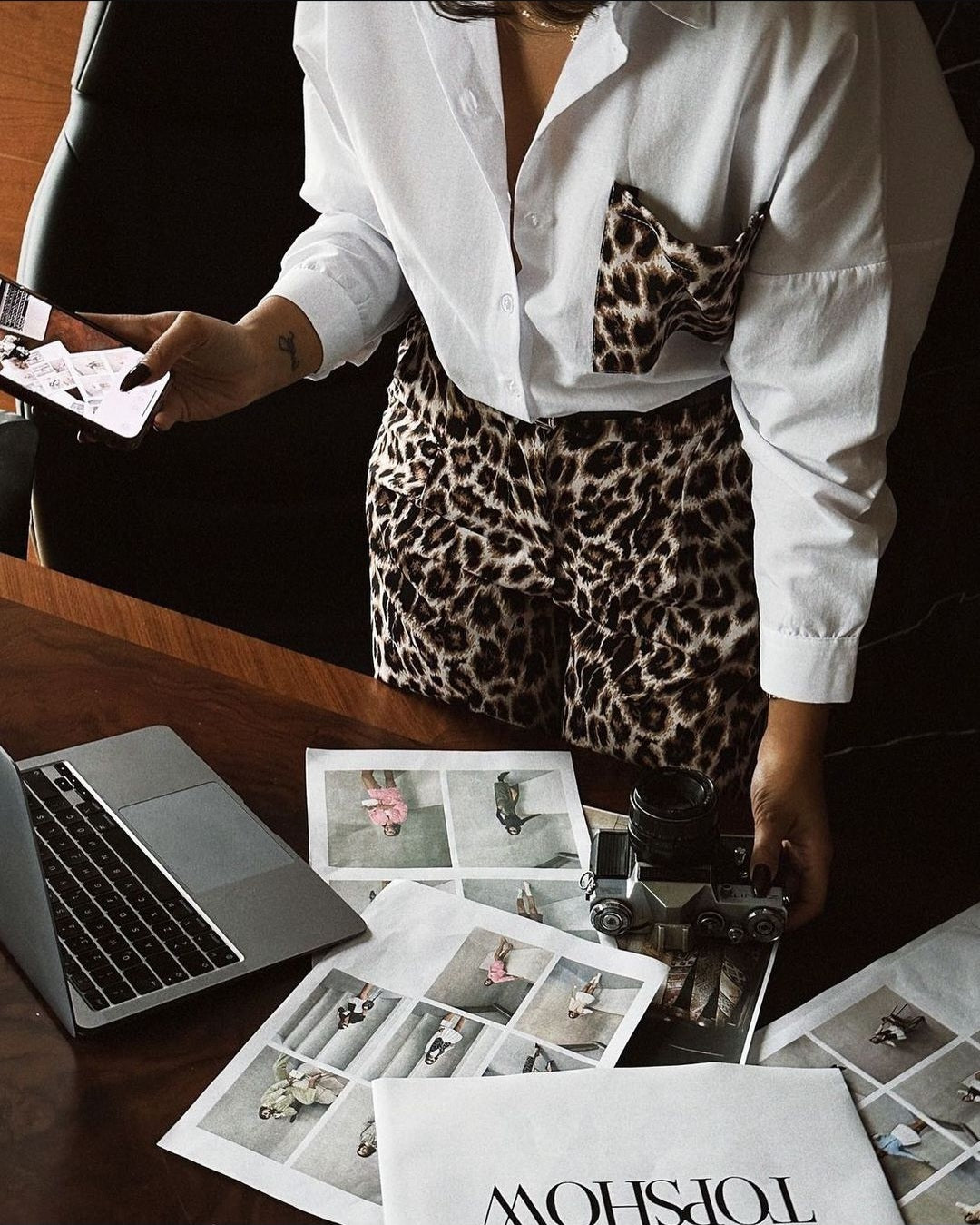 Unleash your wild side with our Savanna Luxe set! Featuring fierce animal-print pants with a Chanel-inspired hem for a touch of elegance, paired with a crisp white blouse accented by a matching animal-print pocket. Perfect for making bold moves and staying chic wherever you go!